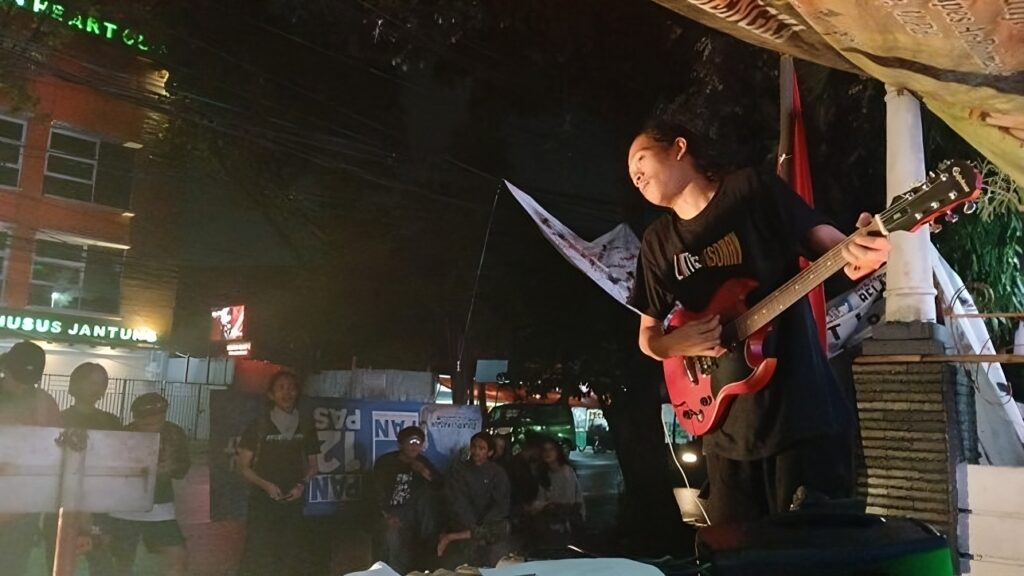 Penampilan musik dalam acara Mimbar Bebas yang digelar oleh Aliansi Mahasiswa ISBI Bandung di pada 19/02/2025 (Foto: M.Haikal.A.A)
