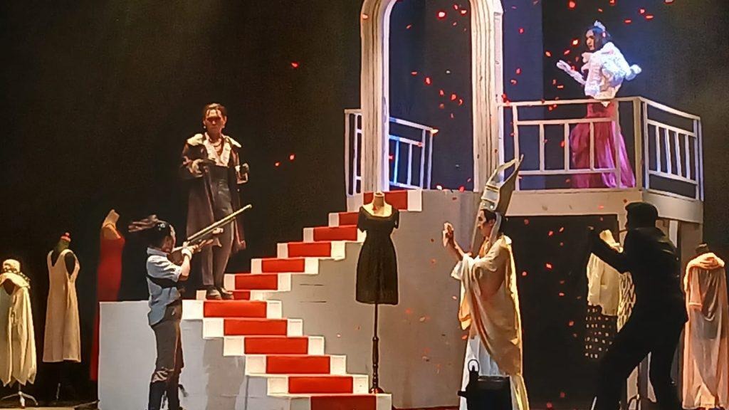 Salah satunya adalah transisi dari efek suara yang terkadang terasa terlambat masuk, sehingga sedikit mengganggu atmosfer adegan yang sedang dibangun. Dalam pementasan ini, meskipun para aktor berhasil membawakan watak dalam peran mereka secara utuh hingga akhir, ada beberapa aspek teknis yang mengurangi dampak dramatik dari cerita. Salah satunya adalah masalah artikulasi dari beberapa aktor yang masih terdengar kurang jelas. Hal ini menjadi cukup fatal karena dapat menghambat pemahaman penonton terhadap dialog dan pesan yang ingin disampaikan, bahkan berpotensi menyebabkan kejenuhan kepada penonton awam dalam mengikuti alur cerita. Selain itu, modifikasi pada set panggung, seperti penggunaan tubuh manekin untuk mewakili para pekerja di Grand Balcony, meskipun menarik secara visual, terasa seperti penyederhanaan dari konsep asli. Penggunaan manekin sebagai representasi dari manusia dimasukan hanya untuk mengisi kekosongan ruang yang ada. Lebih jauh lagi, pengurangan jumlah karakter seperti trio The Photographer (Blood, Tears, dan Sperms), yang seharusnya berfungsi sebagai antitesis bagi para tokoh otoriter seperti Hakim, Jenderal, dan Uskup, berdampak pada ritme garapan ini. Penghapusan atau penyederhanaan peran membuat cerita terasa terburu-buru, dengan mengulur waktu untuk pengembangan narasi, dan para penonton dalam pertengahan jalan diajak berlari menuju puncak konflik tanpa diberikan ruang yang cukup untuk membangun ketegangan emosional.