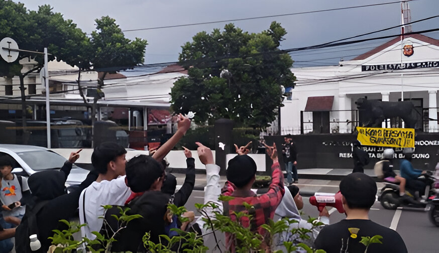 “Salah satu tuntutan yang diangkat adalah membebaskan Sukatani dari ancaman-ancaman polisi,” ujar Ahmad Sidik, salah satu demonstran.
