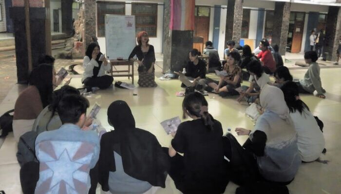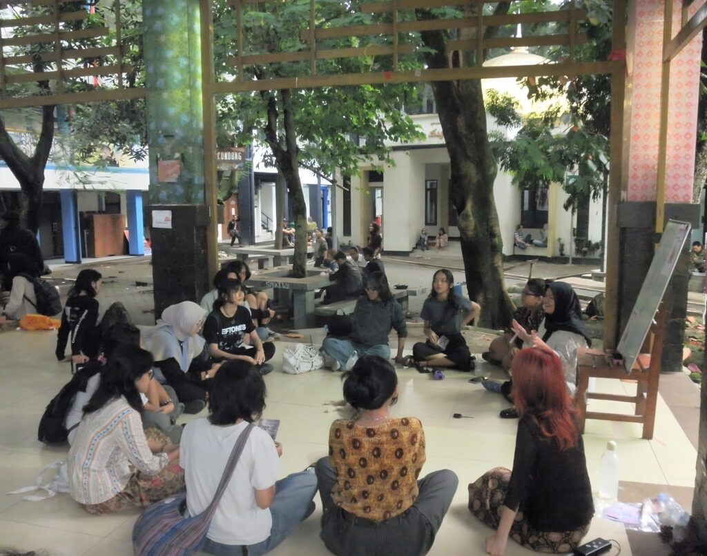Sesi diskusi dan berbagi dalam forum Ngobarrun di Pendopo Mundinglaya ISBI Bandung. Rabu, 26 Februari 2025. (Foto: Kolektif Amaterrun)