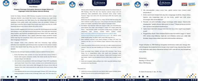 Press Release Pihak Kampus ISBI Bandung terkait pembatalan “Wawancara dengan Mulyono” pada laman akun Instagram @isbi.bandung_official