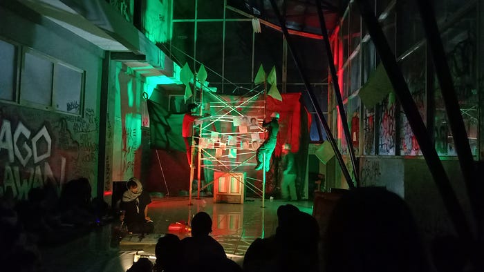 Pada Jumat, 26 September 2025, di Terminal Dago yang dalam beberapa waktu belakangan berhenti beroperasi karena sempat berada dalam pusaran sengketa, sebuah tempat yang dipenuhi coretan dinding, dan biasanya hanya tersorot temaram cahaya dari luar jika malam tiba, seketika berubah menjadi ruang pementasan alternatif bagi seni pertunjukan. Kelompok teater Aruslaras menggelar pertunjukan “Rute Keramat”, sebuah pertunjukan yang cukup reflektif, dengan pendekatan pertunjukan yang menggabungkan antara unsur historis dan artistik.